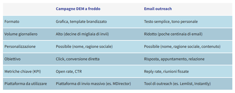 2. Qual è la differenza tra email outreach e campagna DEM a freddo?